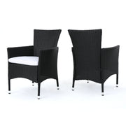 Dimensional Outdoor Dining Chair With Cushion Seat And Iron Frame, (Set of 2) - Black
