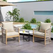 Modern Lounge Chair With Curved Aluminum Frame, Rope Weave Design, And Cushioned Comfort For Outdoor Living - Beige / Natural