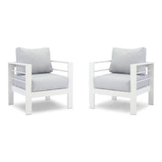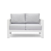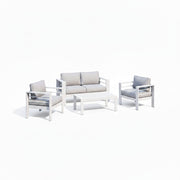 4 Piece Patio Conversation Set With Cushions And Powder Coated Frames, Loveseat, Armchairs, Coffee Table - Gray / White