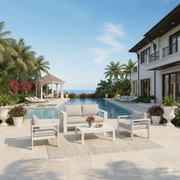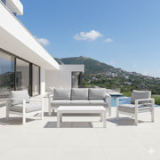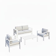 4 Piece Patio Conversation Set With Cushions, Powder Coated Frame, Coffee Table - Gray / White