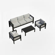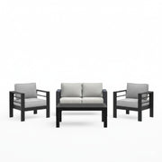 4 Piece Patio Conversation Set With Cushions, Powder Coated Frame, Coffee Table - Light Gray