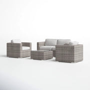 4 Person Outdoor Wicker Seating Set With Cushions, Patio Lounge Group - Gray Mix