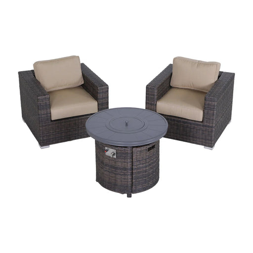 Complete 3-Piece Set: Includes 2 club chairs, 1 fire pit table, 4 cushions, and a fire pit cover. Built for All Seasons: UV-, water-, and weather-...