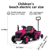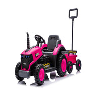 Kids Electric Ride On Tractor With Trailer 12V Powered Farm Toy Car - Magenta