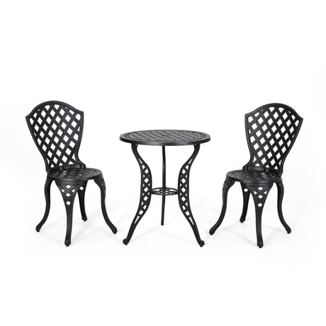 3 Piece Metal Bistro Set With 2 Curved Armrest Chairs - Black