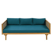 Claremont - 3 Seater Daybed With Rattan Arms And Cushions, Acacia Wood Frame - Teak / Teal
