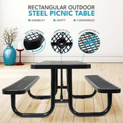 Outdoor Steel Picnic Rectangular Table With Umbrella Pole - Black