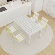4 Piece Set Of Modern Color Block Designed Single Chairs With Long Table