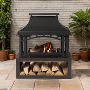 40" Wood Burning Fireplace, 50000 Btu Steel Fire Pit, Wood Burning Chimney For Outside Patio Deck Garden Backyard - Black