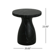Outdoor Travertine Side Table, Light Weight Concrete End Table - Black Marble Effect