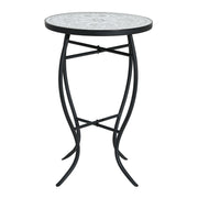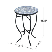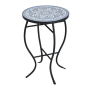 Outdoor Round Side Table With Mosaic Style Top And Curved Legs - Black / Blue / White