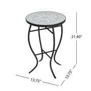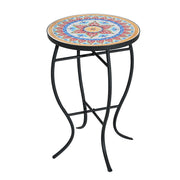 Outdoor Round Side Table With Mosaic Style Top And Curved Iron Legs
