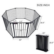 Adjustable Safety Gate 8 Panels Play Yard Metal Doorways Fireplace Fence Christmas Tree Fence Gate For House Stairs Gate Prohibited Area Fence - Black