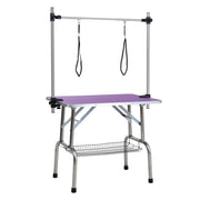 Folding Dog Pet Grooming Table Stainless Steel Frame Rubber Mat On Board With Adjustable Arm And Clamps Pet Dog Cat Grooming Table - Purple