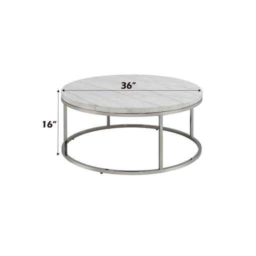 View full detailsElegant Design: This table features a round engineered marble top combined with a sleek high gloss finish, creating a sophisticated centerpiece f...