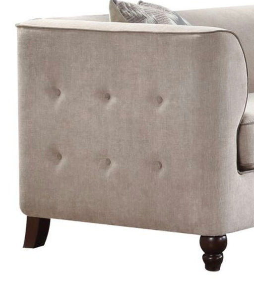 View full detailsElegant Design: The Cyndi Tan Velvet Sofa features sophisticated button tufting on the inside backrest and outside arms, enhancing its elegan...