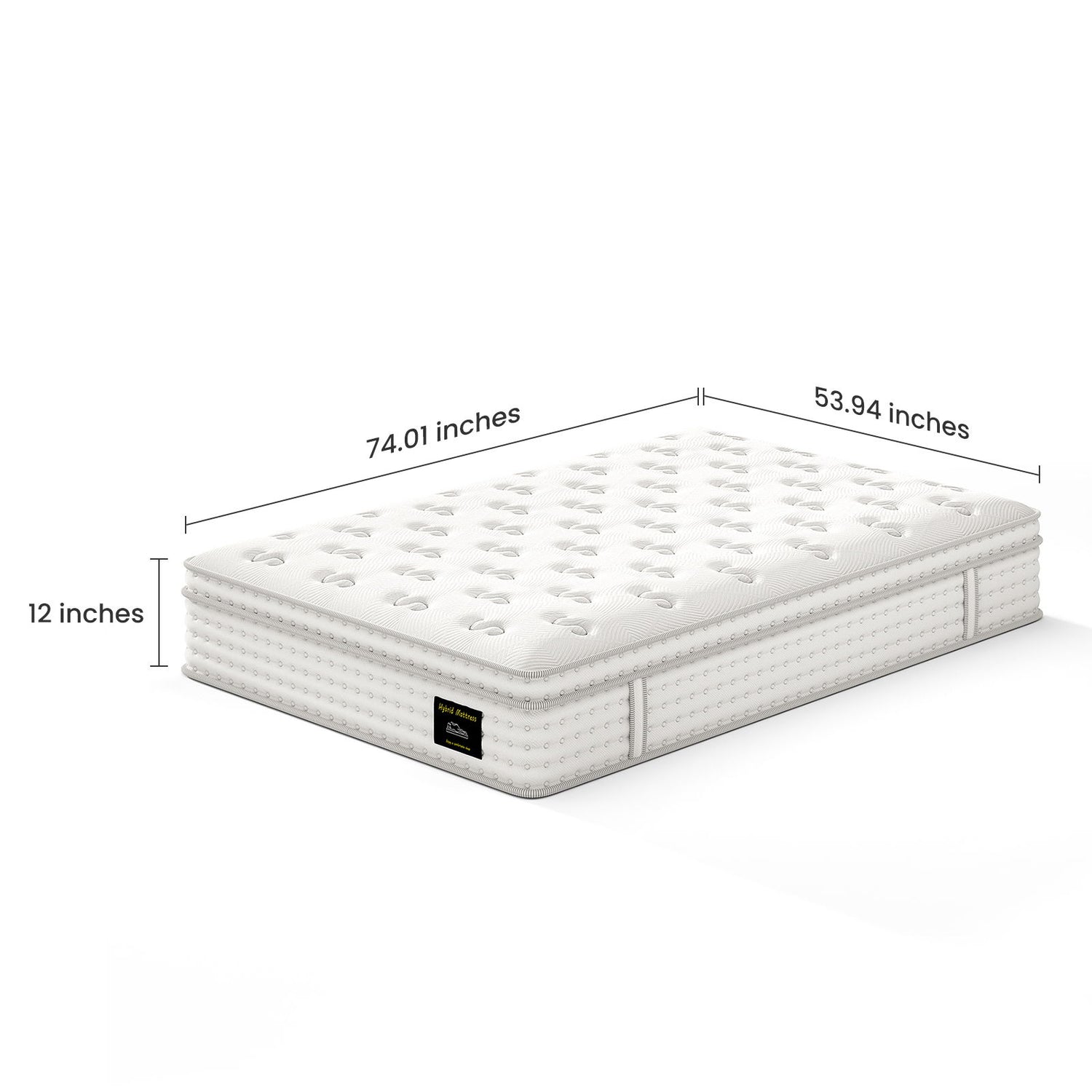 12'' Full Hybrid Mattress, Memory Foam & Pocket Springs For Pressure Relief, Fiberglass Free - White