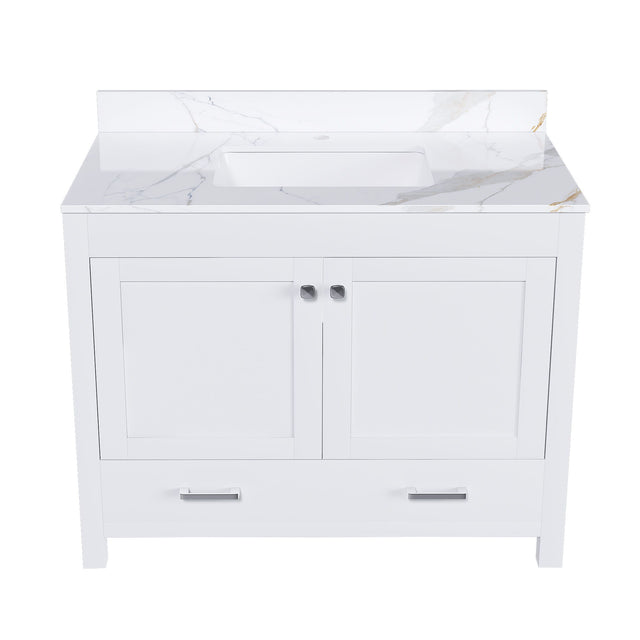 43" Bathroom Vanity, Multi Functional Cabinet, Doors And Drawer - White