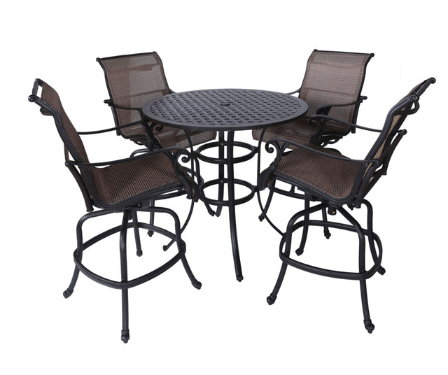 - All-Inclusive Set: Complete 5-piece bar set includes 4 comfortable swivel sling chairs and a round table, perfect for creating the ultimate outdoor bar experience.