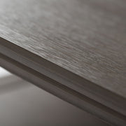 - Transitional, contemporary design includes tapered legs and molded crown edged table top