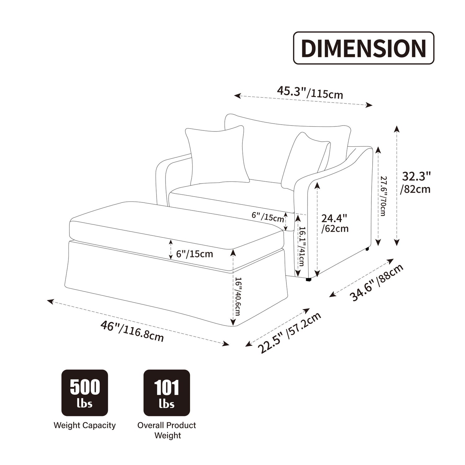 - Elegant Design: Modern oversized silhouette with clean lines and black metal legs for timeless appeal