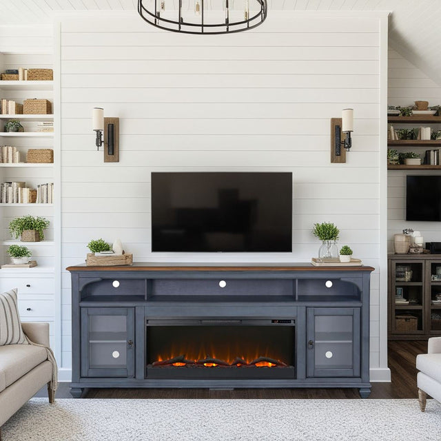 Americana - 86 In Fireplace TV Stand For TVs Up To 95" - Blue