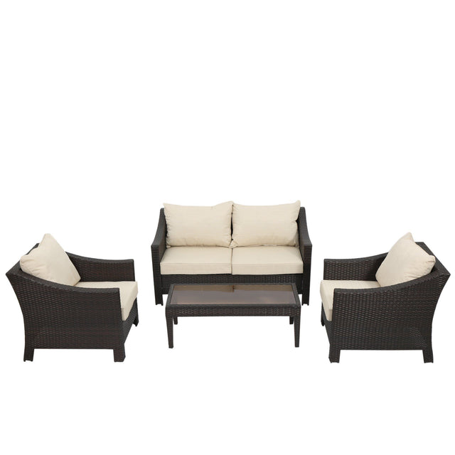 Antibes - 4 Pieces Wicker Chat Set - Brown / Beige