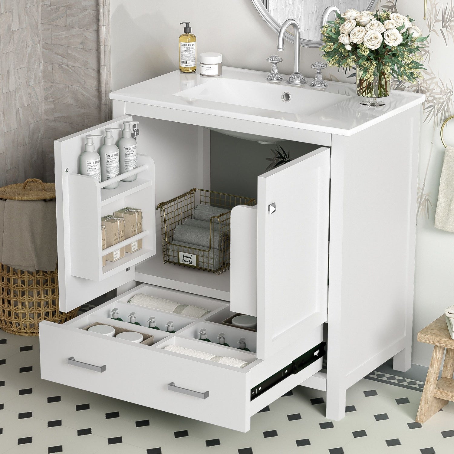 Bathroom Vanity With Single Sink, Combo Cabinet Undermount Sink, Bathroom Storage Cabinet With Two Doors And A Drawer, Soft Closing, Multifunctional Storage, Solid Wood Frame - White