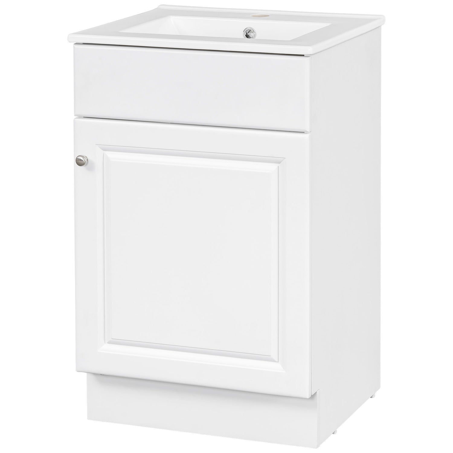 20" Bathroom Vanity With Sink, Freestanding Cabinet With Door Shelf And Adjustable Shelf, And Ceramic Construction - White