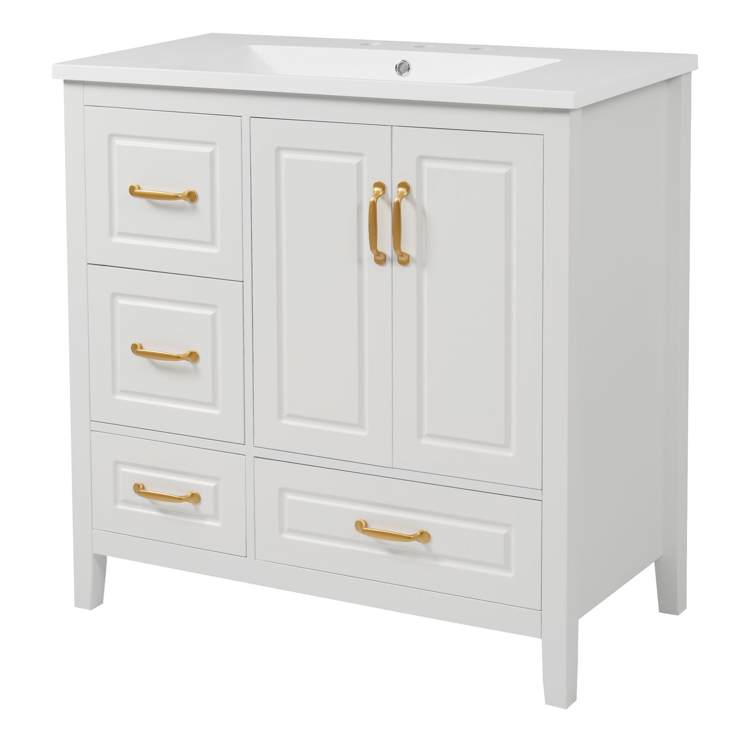Elegant Freestanding Bathroom Vanity With Sink, Soft Closing Cabinet & Drawers - White