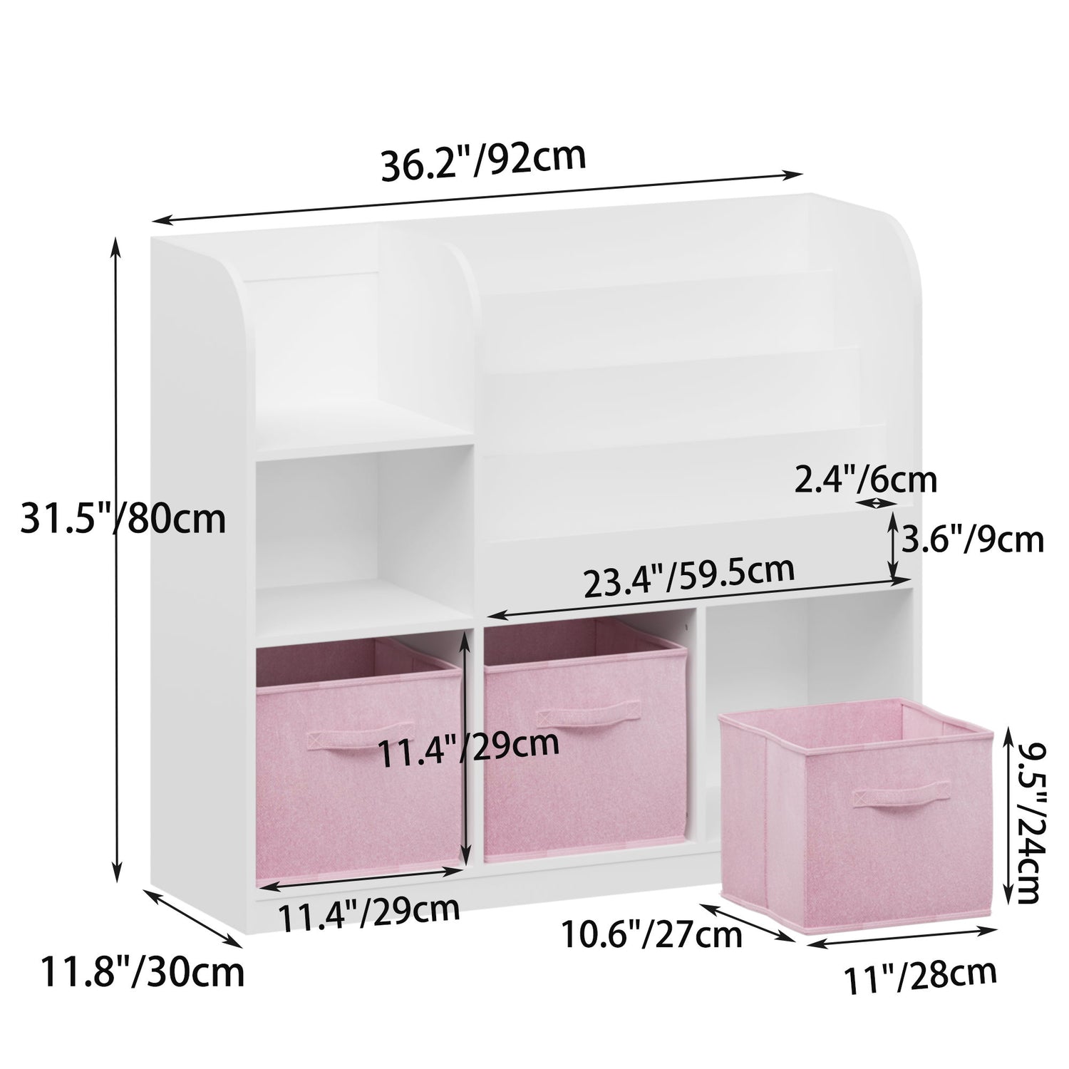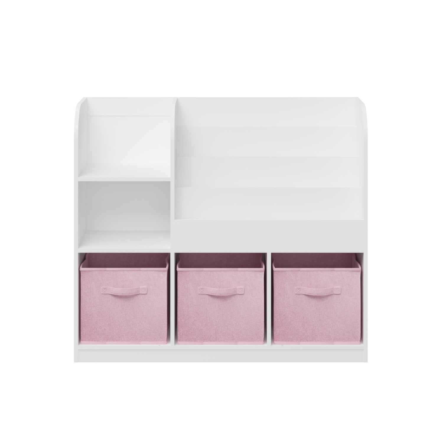 Bookcase And Bookshelf With 3 Collapsible Drawers, Multifunctional Display Stand For Bedroom, Playroom - White / Pink