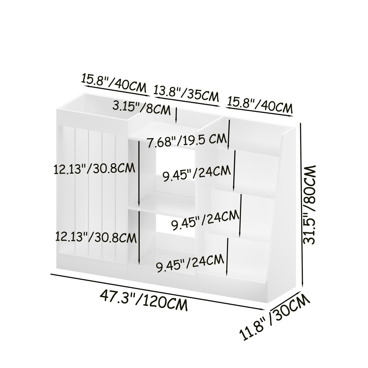 47.3"W x 11.8"D x 31.5"H - 42.35 lb