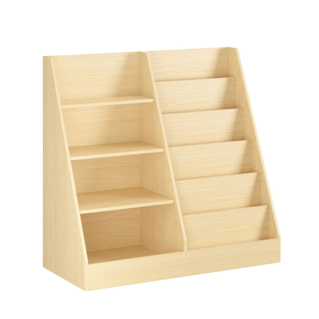 Bookshelf And Toy Storage Organizer, 4 Tier Bookcase With Display Stand For Playroom - Natural