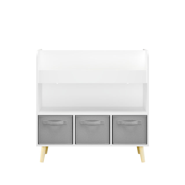 Bookshelf With 3 Bins, Storage Shelf For Toys And Books - White