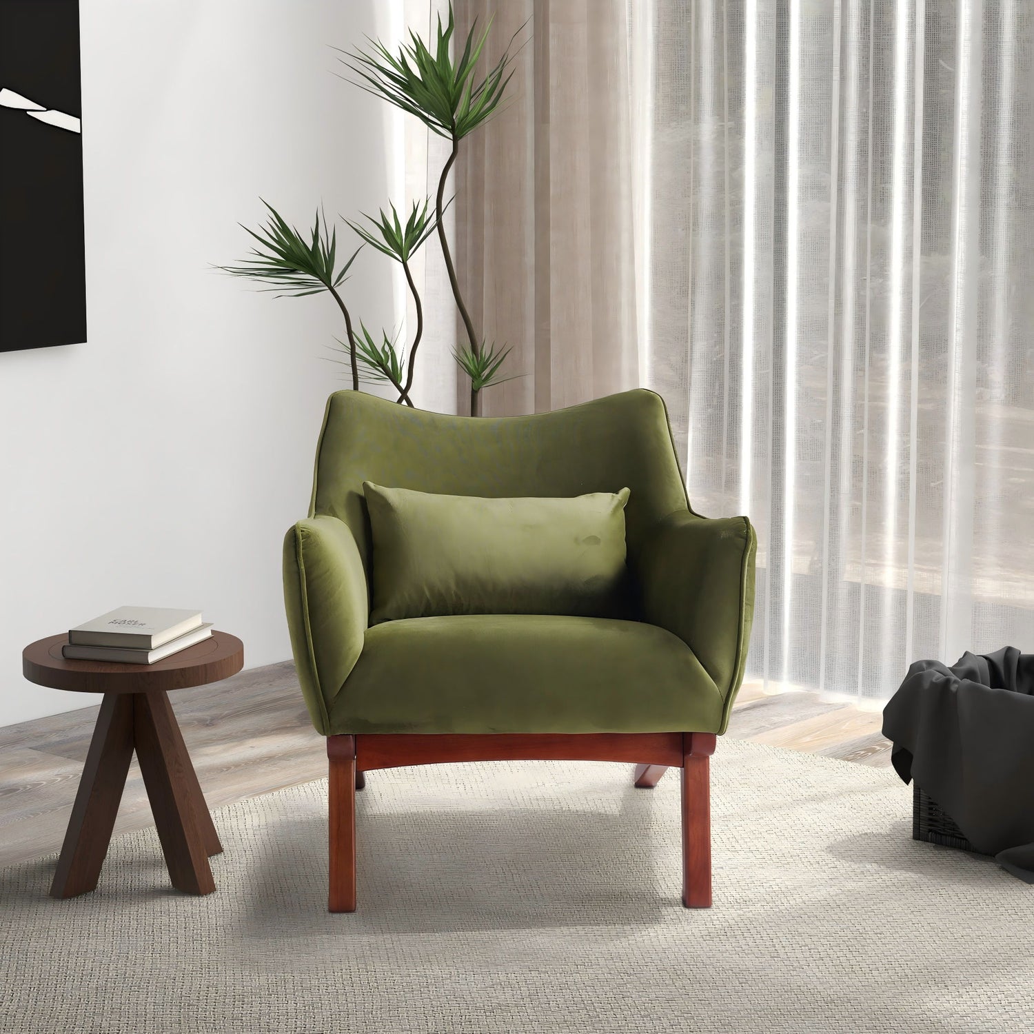 Brayden - Mid-Century Modern Velvet Armchair - Burnt Orange / Wood