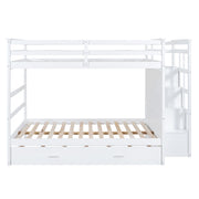 Full Over Full Bunk Bed With Twin Size Trundle And Staircase - White