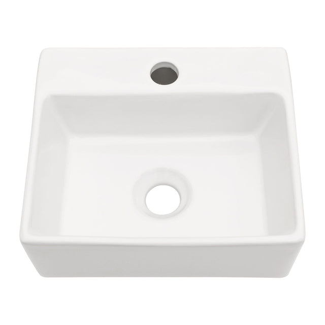Modern Ceramic Rectangular Wall Mount Bathroom Sink With Single Faucet Hole - White