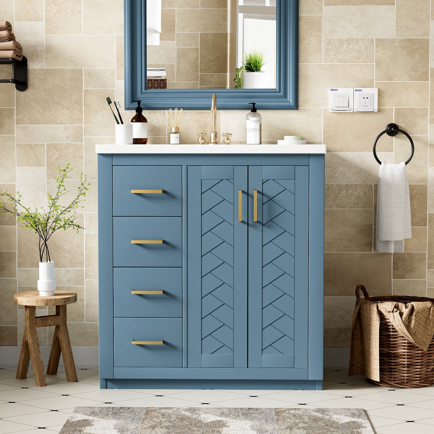 Bathroom Vanity With Ceramic Sink Combo, Frame Bathroom Storage Cabinet, Freestanding Vanity Set With 3 Drawers & Soft Closing Doors - Blue