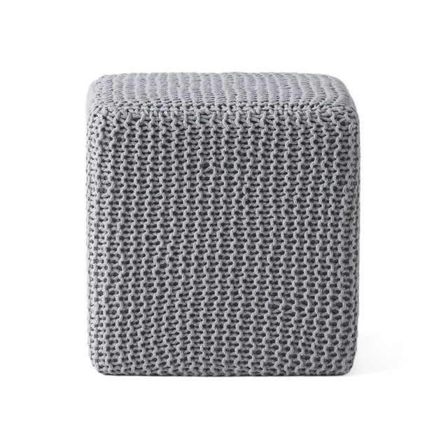 Chabani - Indoor Modern Knitted Fabric Cube Pouf Ottoman - Light Gray