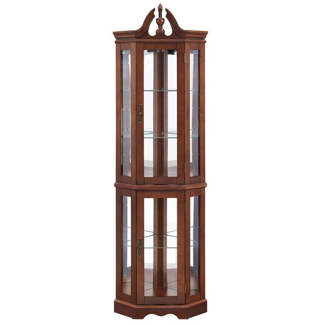 - Attractive Design Details: Features an elegant top finial, a full mirrored back panel for enhanced display, and a rich dark Walnut finish that complements traditional décor styles.