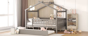 Full Size House Bed With Twin Size Trundle - Gray