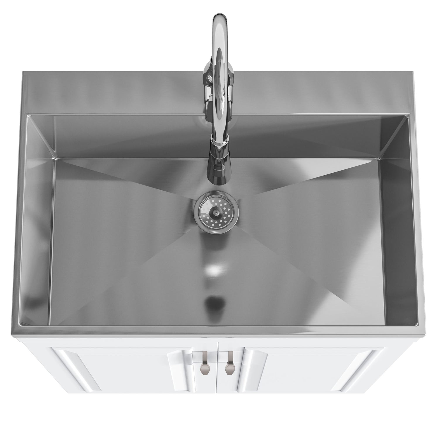 Darwin - Deluxe Laundry Cabinet With Pull-Out Faucet And Stainless Steel Sink - White