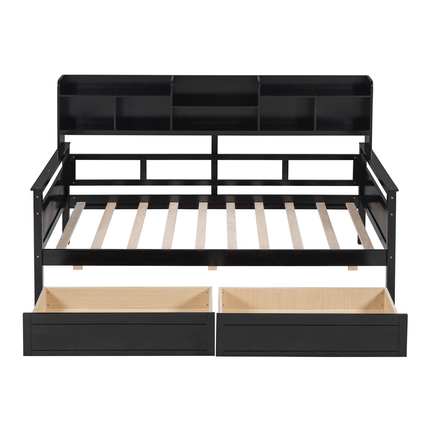 Twin Size Daybed, Slat Support, With Bedside Shelves And 2 Drawers - Espresso