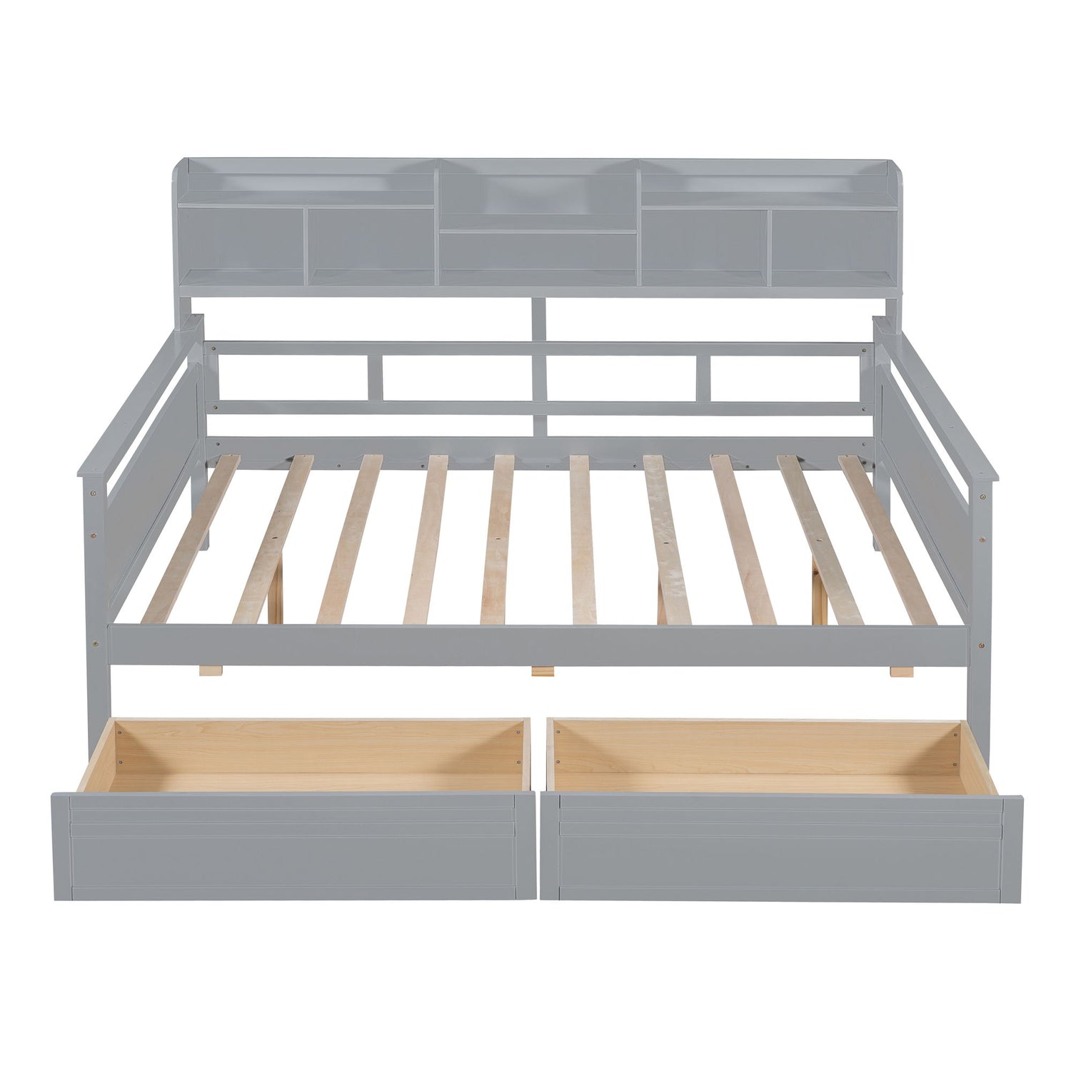 Full Size Daybed, Slat Support, With Bedside Shelf And 2 Drawers - Gray