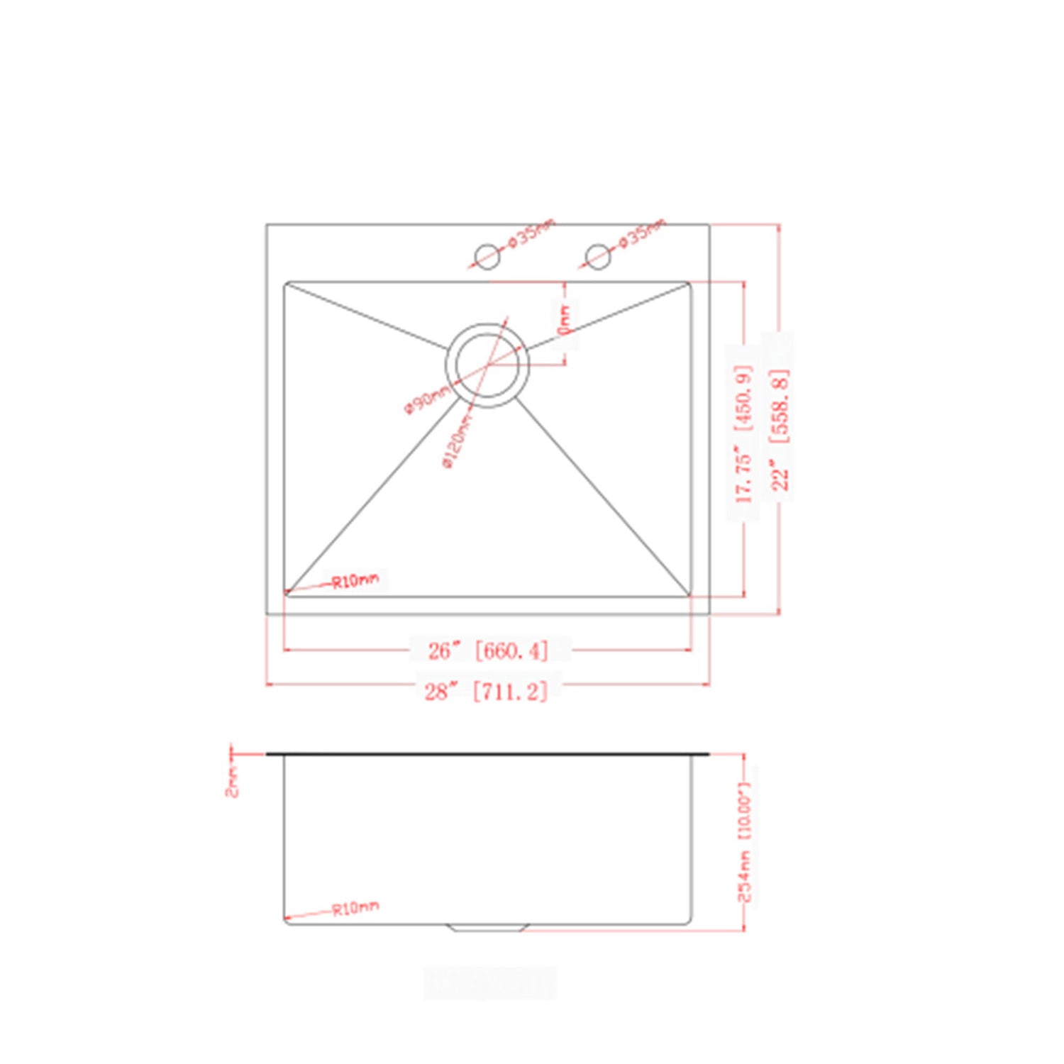 Drop In Kitchen Sink, 16 Gauge Stainless Steel, Single Bowl, Topmount Basin - Gray / 28"W x 22"D x 10"H is backordered and will ship as soon as it is back in stock.