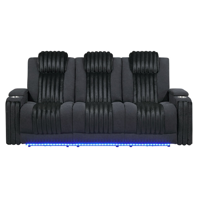 Duran - 3 Piece Power Reclining Sofa Loveseat And Recliner, LED, USB And Bluetooth Speaker - Black