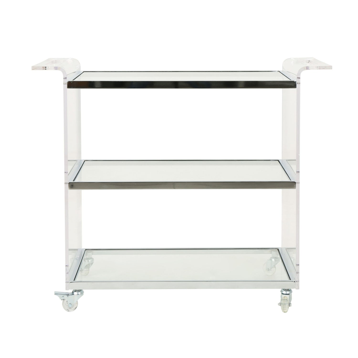 Elegant Acrylic Bar Cart With Tempered Glass Shelves And Rattan Metal Frame - Clear