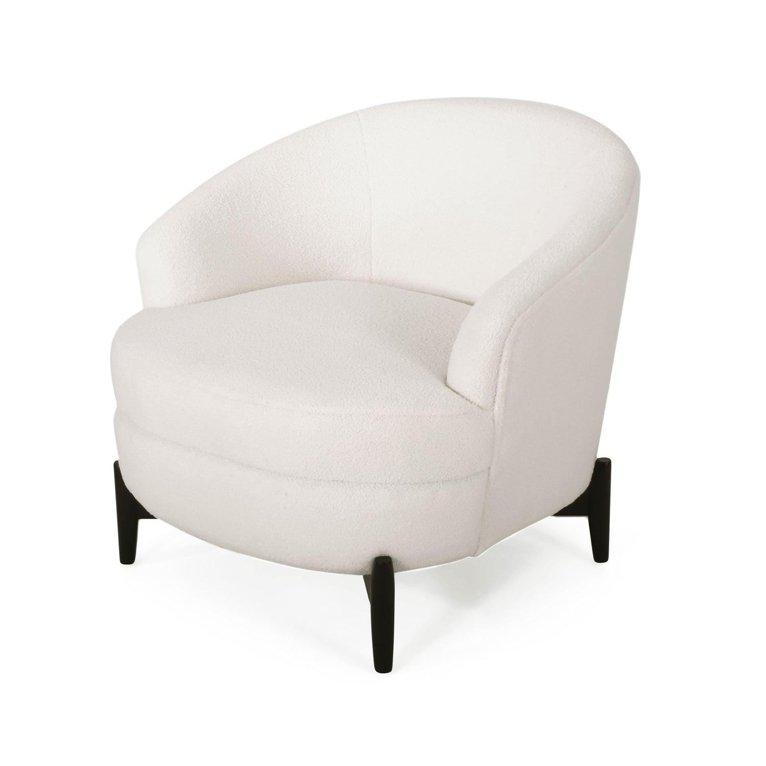 - Stylish Design: Barrel-style with textured boucle upholstery for a modern touch.