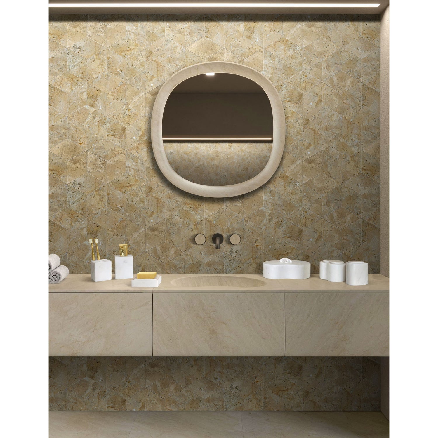 - Timeless Elegance: This marble set brings sophistication and luxury to any bathroom with its stri color and natural textures.