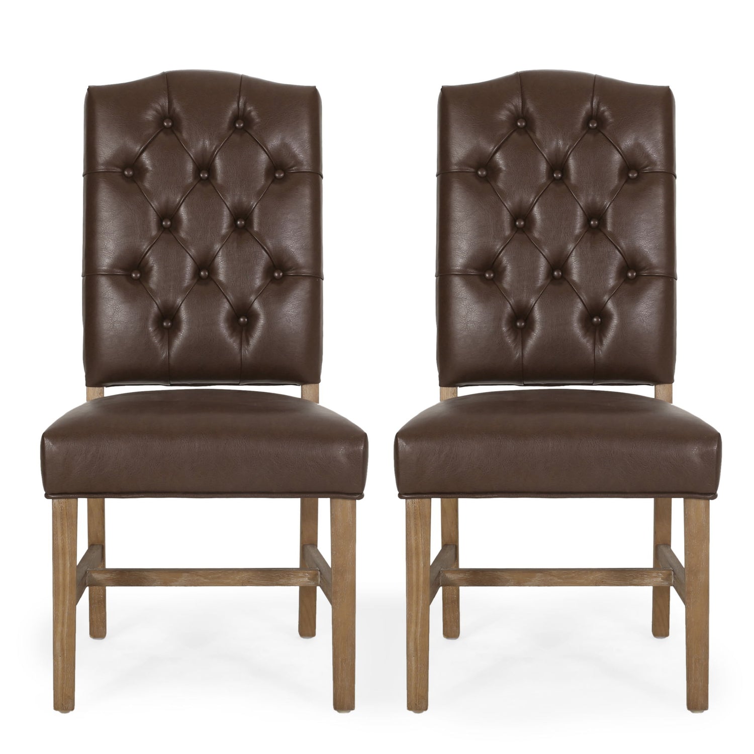 Elegant Dining Chair With Button Tufted Design - Dark Brown